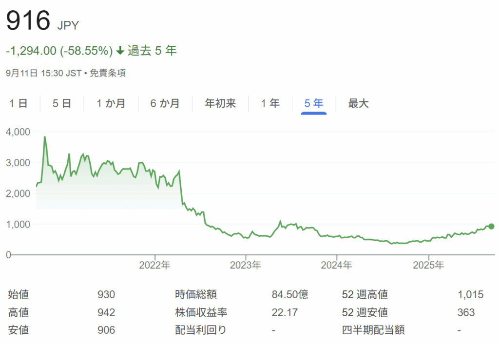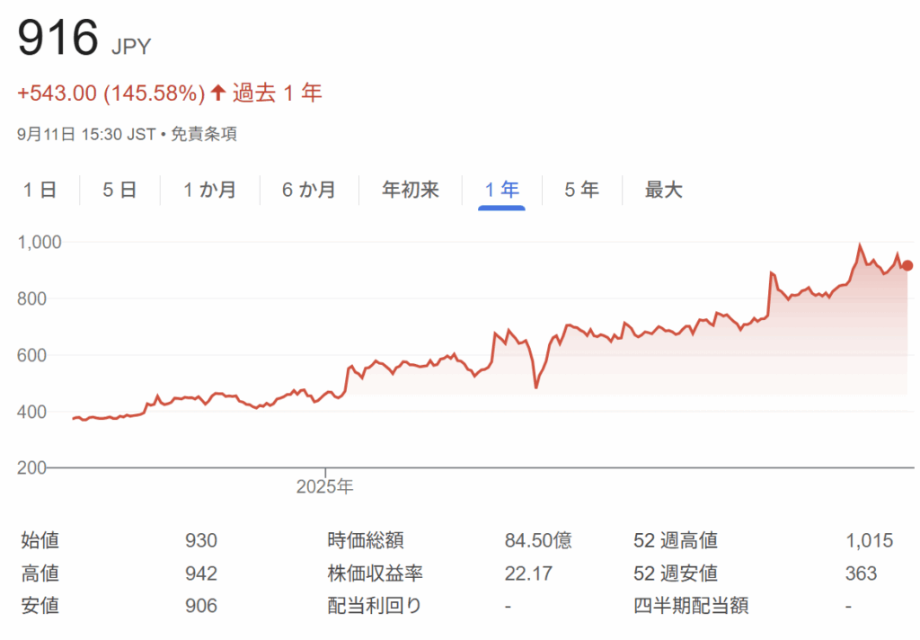 おそらく10月半ばの通期決算発表においては過去最高の売上、利益を出すことになるだろう。3Qの時点で営業利益は5億円ほどだが、このままいくと7億円前後で着地しそうな期待が持てる。その場合、PER20倍で140億円となり、現在の時価総額85億円を大きく上回ることが期待される。逆に今のまま5億円ほどの着地(4Qでは営業利益が積み増せなかった)の場合でも、PER20倍なら時価総額100億円で今より高い水準が期待できる。
